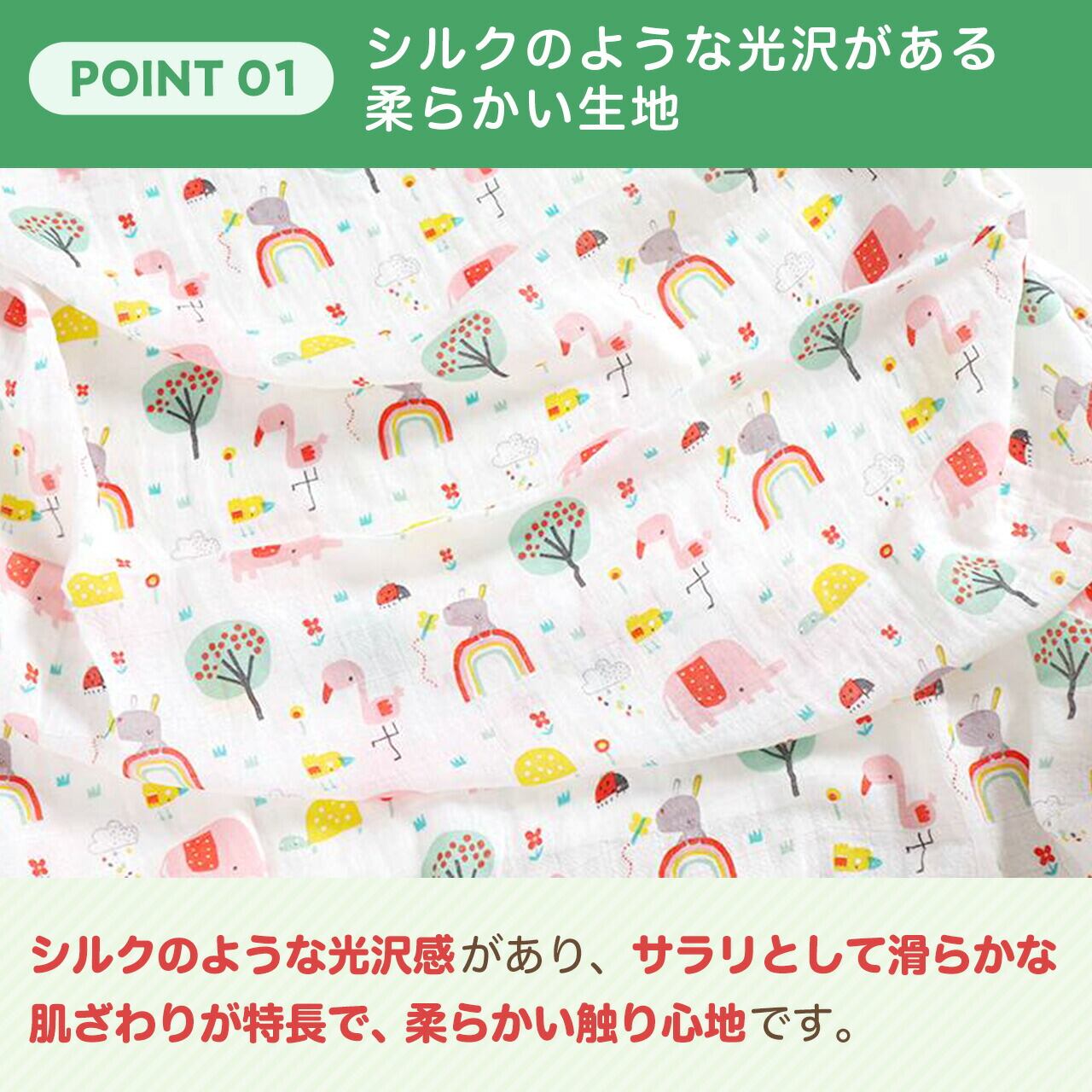 生後3ヵ月までには、おくるみで包むことで赤ちゃんのモロー反射が落ち着くと言われています。おくるみ以外にもブランケット、ベビーカー、抱っこ紐にかけることで紫外線対策に~また、汗っかきの新生児の夏のお昼寝ケットやお風呂上がりのバスタオル、保育園のお昼寝ケットなどでも大活躍。