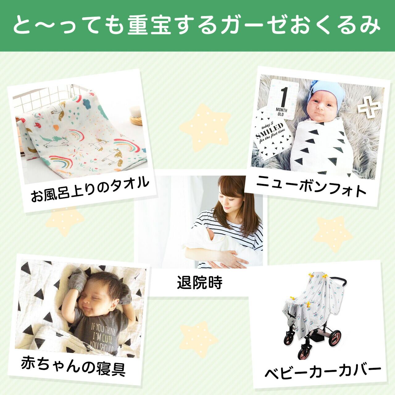 など幅広く大活躍。ガーゼおくるみは洗濯機で気軽に洗えていつも清潔。出産準備、出産祝いの贈り物に大人気。